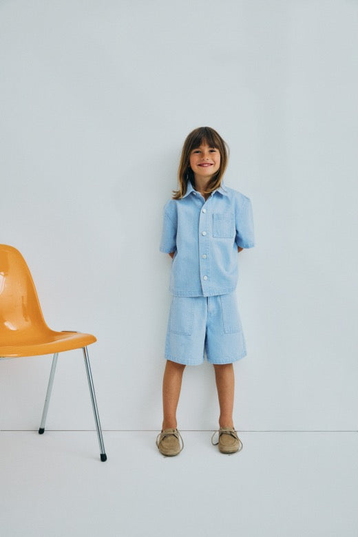 De Ginger Bermuda Light Denim van The New Society is een lichtblauwe denim bermuda , perfect voor een casual, zomerse outfit.
