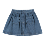 Jeans rokje met streepjes, leuke opgestikte zakjes en knoopjes op de voorkant van Emile et Ida.