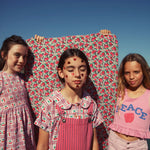 Katoenen jurk met ruitjes en kersen allover print van Piupiuchick. Het jurkje heeft mooie elastiek in de taille, korte mouwen en een open rug en sluit doormiddel van touwtjes die geknoopt moeten worden.
