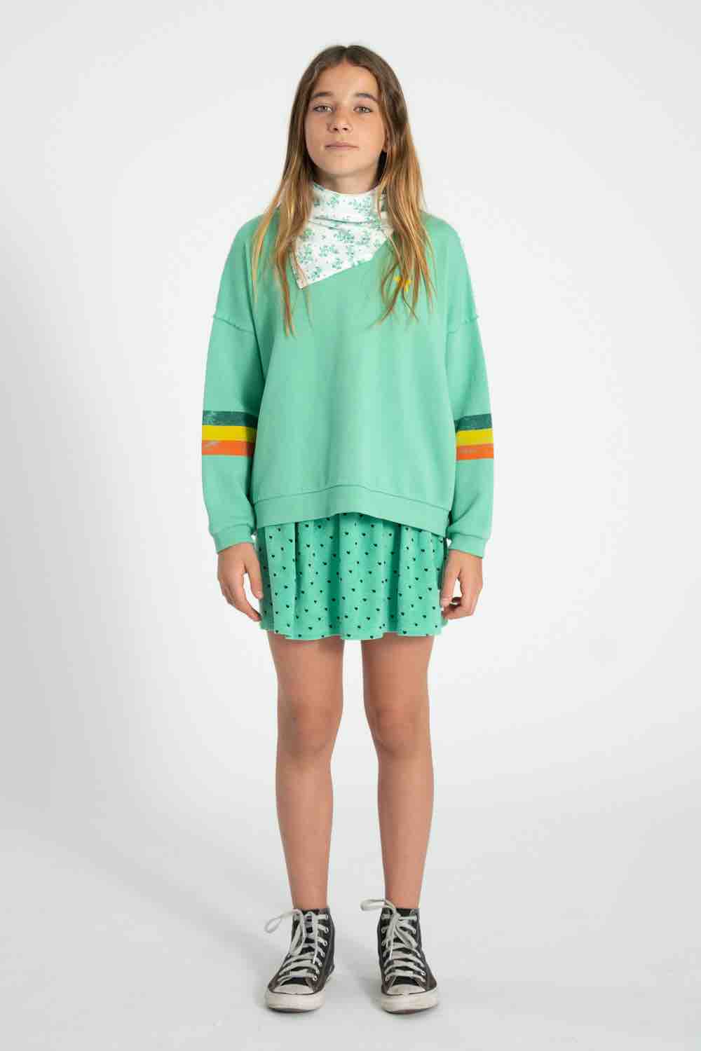 Piupiuchick korte rok | Groen met zwarte hartjes
