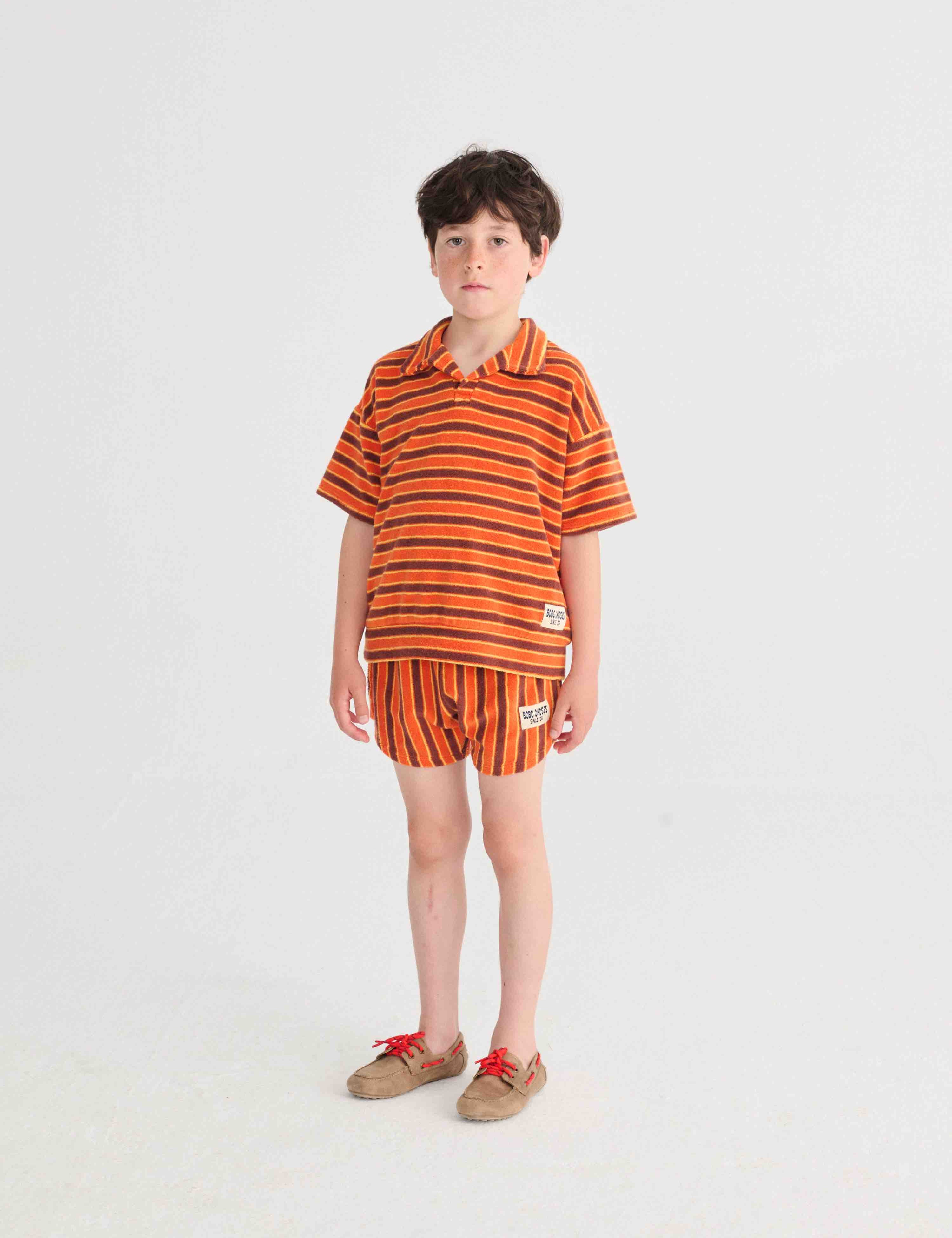 Bobo kiest voor een polo van badstof met strepen in baksteenmotief.