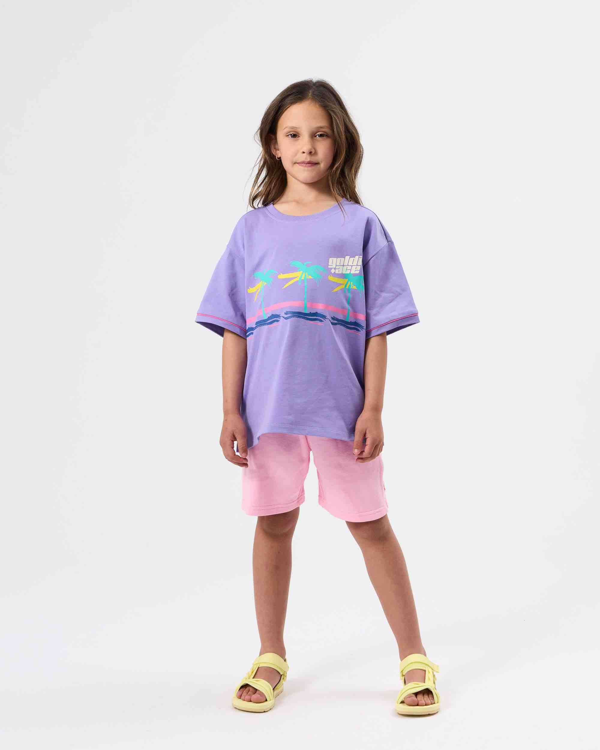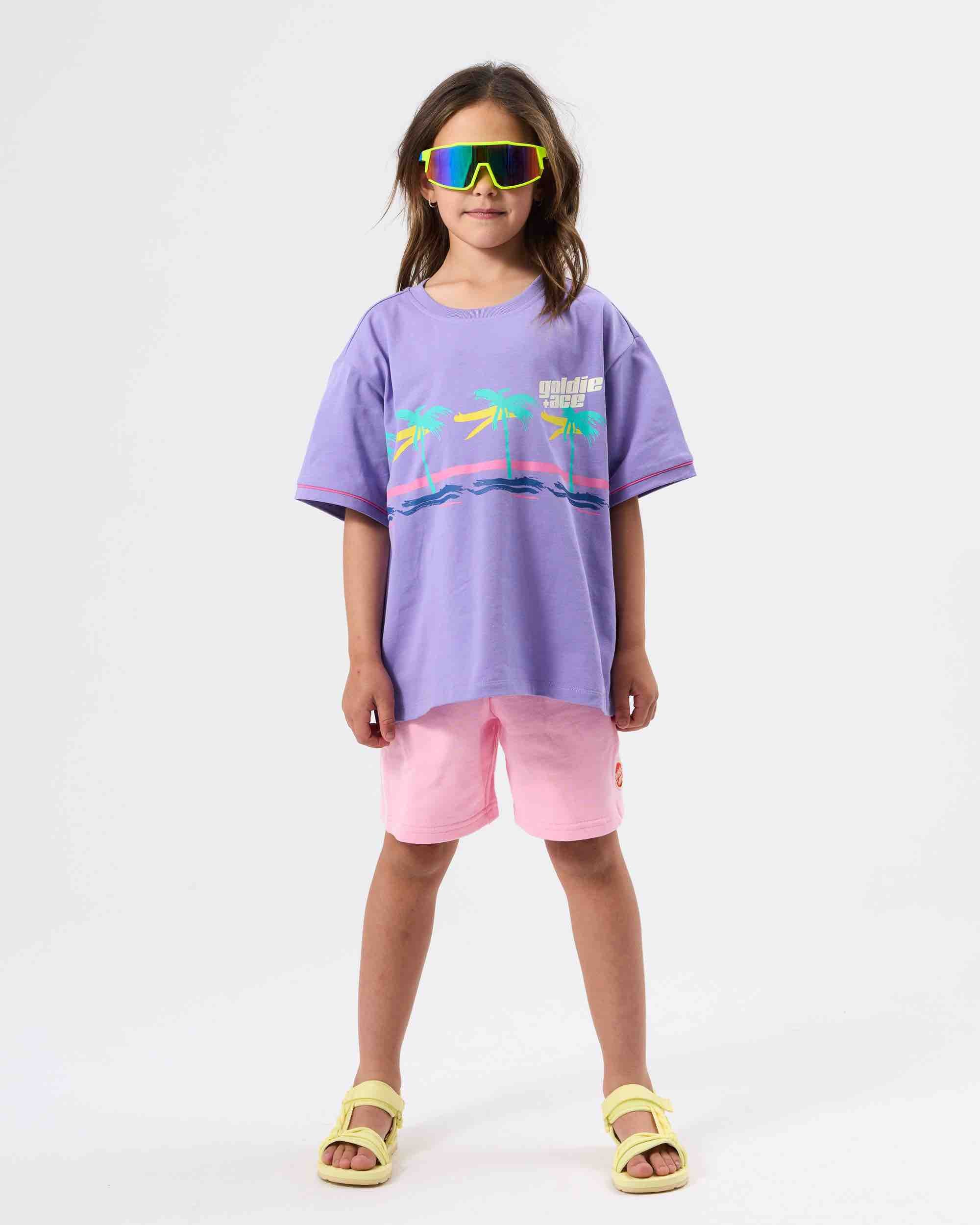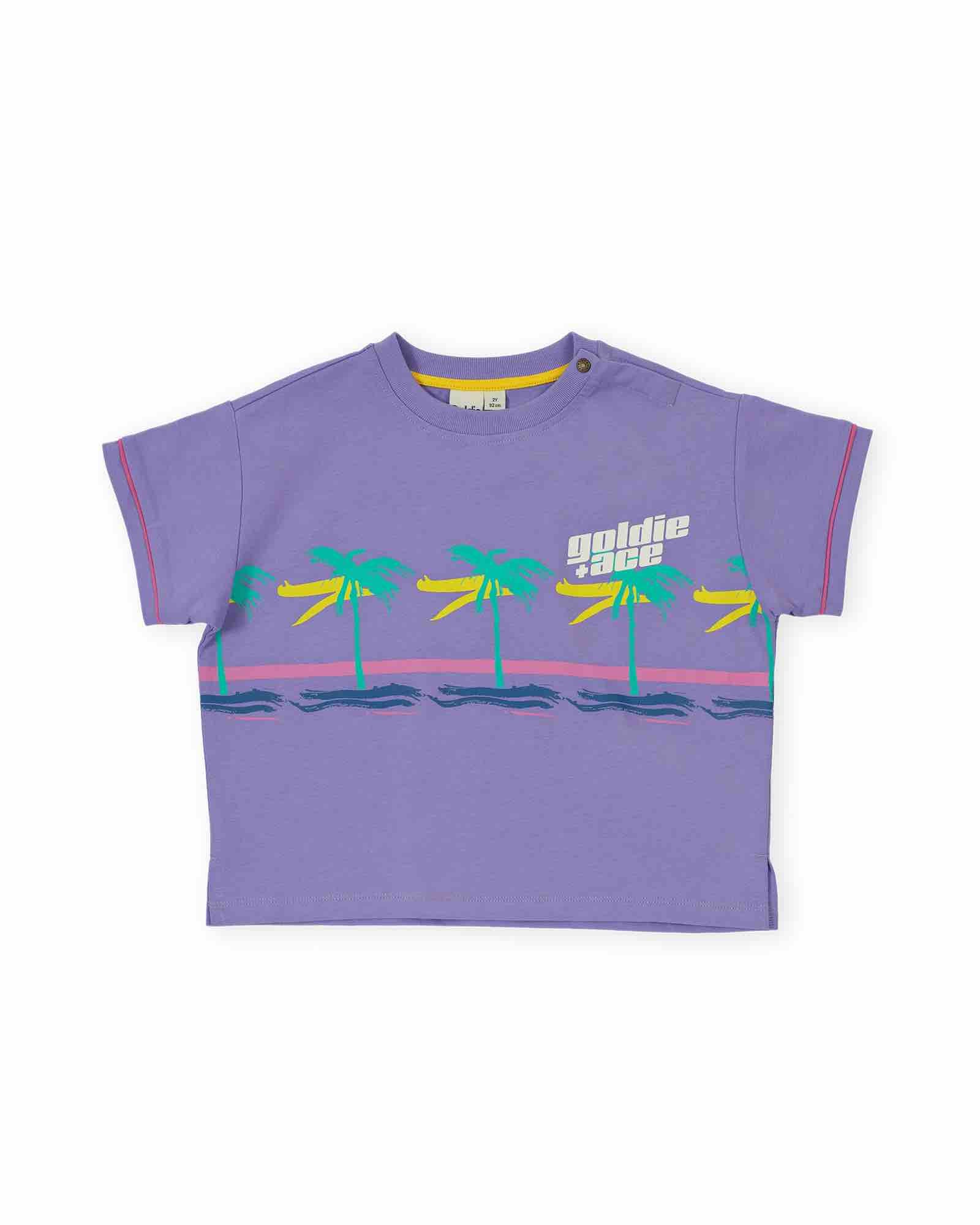 Paars t-shirt met palmbomenprint van Goldie + Ace.