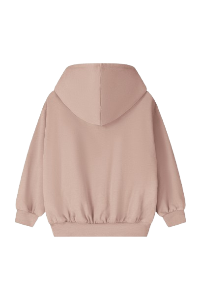 Roze hoodie van Grey Label gemaakt van zachte, biologische katoenen fleece, met een zichtbare voorkant en kangoeroezakken. De hoodie heeft een oversized pasvorm met verlaagde schouders, geribde manchetten en zoom. Afgewerkt met het illegale logo in crèmekleur op de borst.