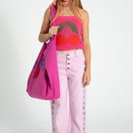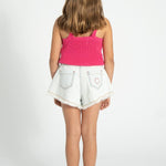 Piupiuchick gebreide top met bandjes | Roze met kersenprint