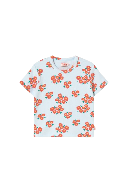 Tiny Cottons Blossoms Rib Tee ijsblauw