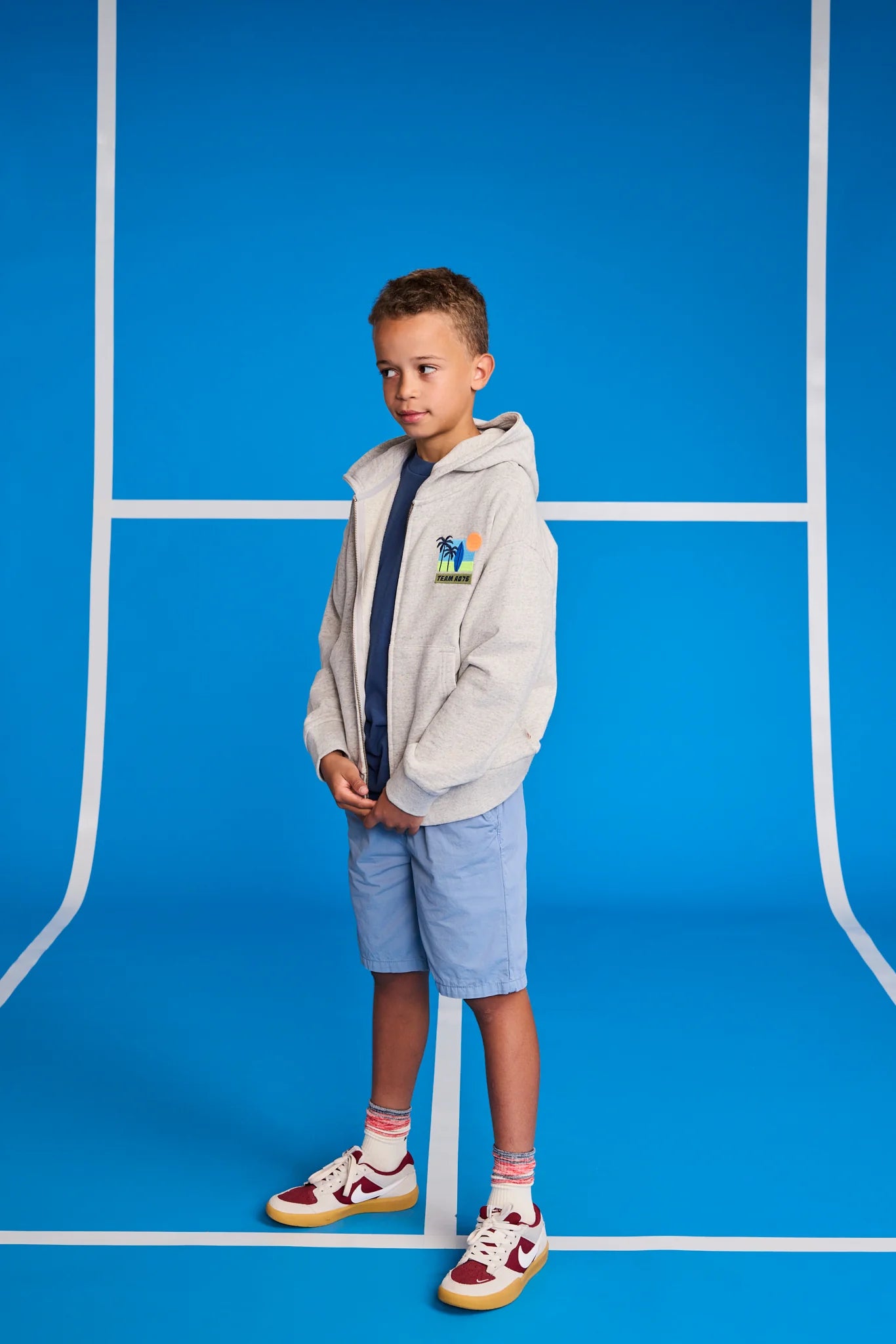 Sportief vest met een heerlijke capuchon. Deze hoodie heeft een verborgen surfersthema op de borst. Lekker zomers.