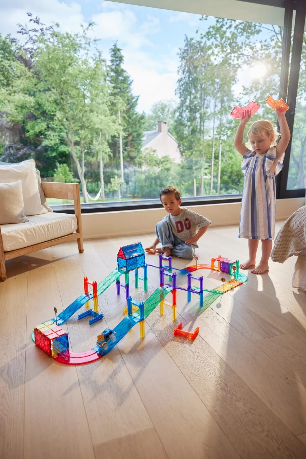 Eindeloos raceplezier met deze Cleverclixx Racebaanset met 65 onderdelen. Met deze leuke, intensieve set bouwt je kind de coolste racebanen op verschillende niveaus. Verkeersborden, een zelfrijdende auto en pilaren zorgen voor extra speelplezier. Cleverclixx groeit bovendien met je kinderen mee.