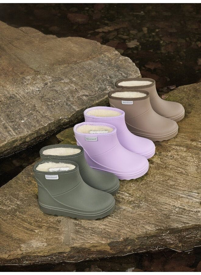 De En Fant thermo boots short kambaba zijn waterdicht en gemaakt van rubber met zolen die getest zijn op goede grip op een natte & gladde ondergrond. De winterlaarsjes zijn heel flexibel en barsten daardoor niet. De En Fant regenlaarsjes zijn met wol gevoerd waardoor de voetjes van je kind heerlijk warm bliven en vallen daarom kleiner. Wij raden aan om een maat groter te bestellen. Door de smalle pasvorm is dit merk minder geschikt voor kinderen met een hoge wreef of brede voet.