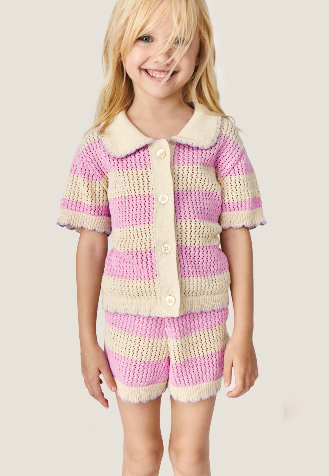 Mipounet Vita Cardigan Knitwear Ecru/Pink