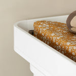 De Wood kinderkamercommode heeft afgeronde randen aan de achterkant en onderscheidt hem visueel van de muur. De 6 stevige en ruime lades lopen moeiteloos op hoogwaardige rails. Een softclose-functie dempt het sluiten van lades en deuren, zodat kleine vingertjes niet bekneld raken. De zijkanten van de commode zijn ontworpen met geïntegreerde, afgeronde haken om decoratieve objecten aan op te hangen, of als praktisch hulpmiddel op drukke dagen waarop dingen gemakkelijk toegankelijk moeten zijn.