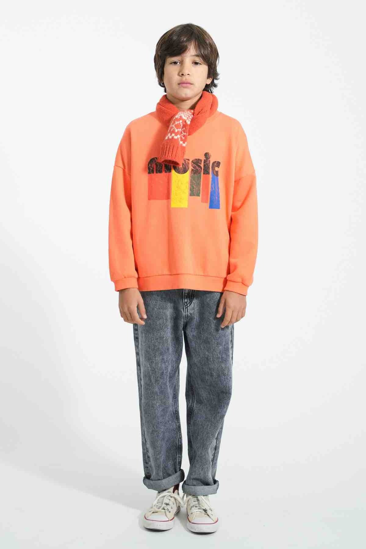 Piupiuchick Sweatshirt Orange w/ "Music" Print