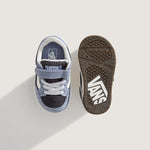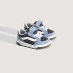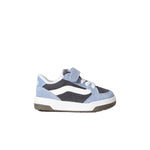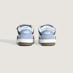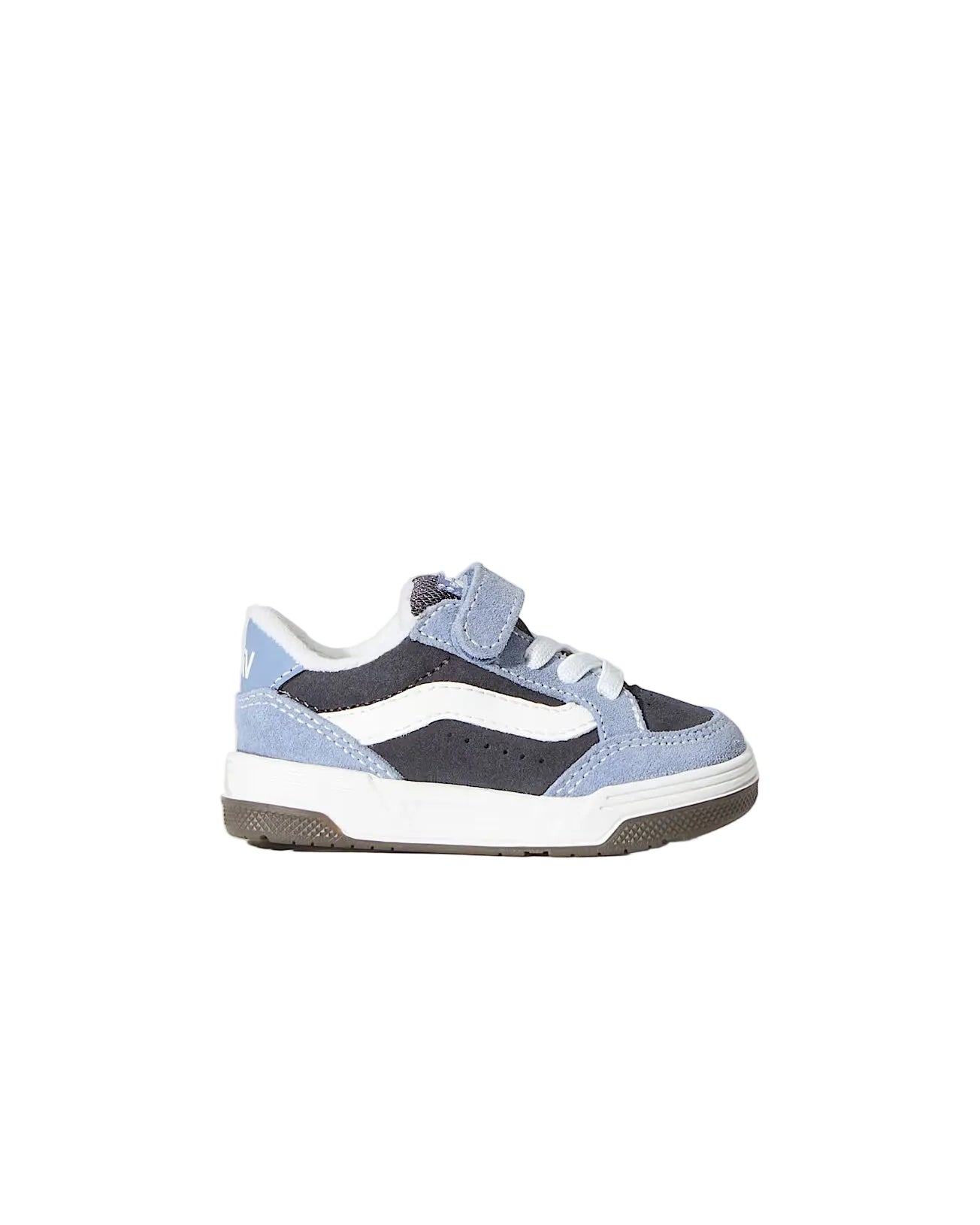 De Vans Hylane blauwe lage sneaker in groen is een stoere blikvanger met een speelse twist. Deze sneaker combineert donkerblauw suède metlichtblauwe accenten, afgewerkt met de iconische witte Vans side stripe. De klittenbandsluiting in combinatie met elastische veters zorgt voor een sportieve look én maakt het aan- en uittrekken super makkelijk. De stevige witte zool met gumkleurige onderzijde en opvallend Vans-logo geeft de schoen een robuuste finishing touch.