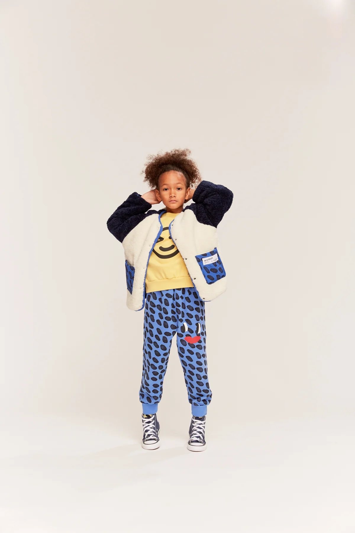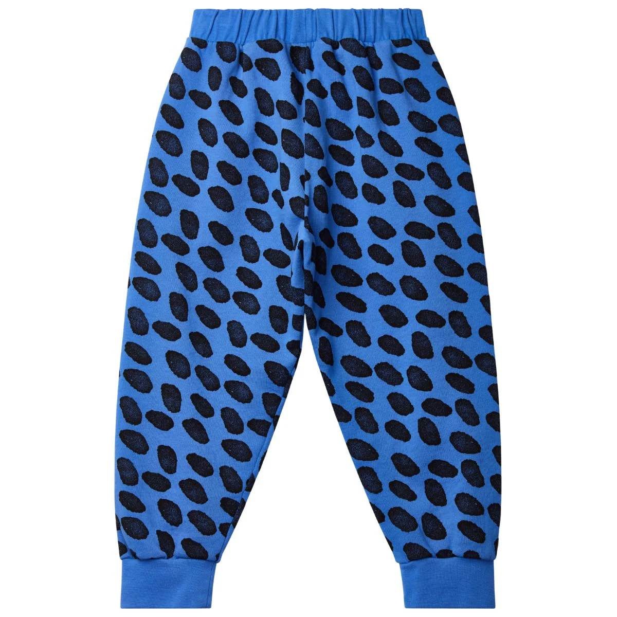 Speelse joggingbroek Dash True Blue met allover stippenprint met ogen en mond van Wynken.